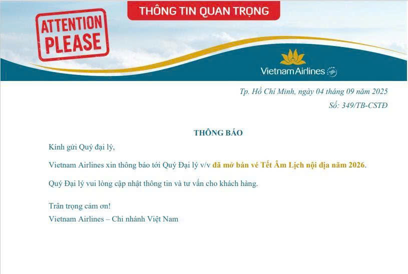 Hãng hàng không quốc gia VIETNAM AIRLINES và VIETJET AIR chính thức mở bán vé Tết âm lịch 2026.